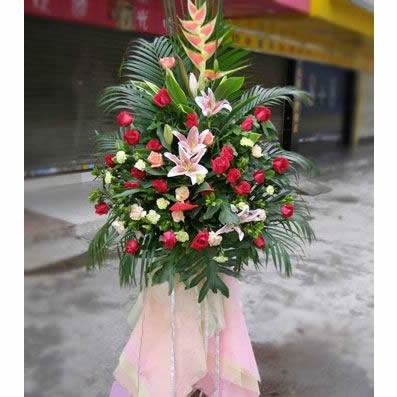 名 称: 开业花篮/名震四方 花 材: 太阳花,玫瑰,百合,大鸟,康乃馨,衬花、绿叶点缀 包 装: 花篮 花 语: 恒心有恒业,隆德享隆名 用途:开业,祝福 |
