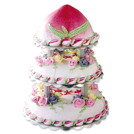 「材 料」经典的寿桃造型,给喜庆的日子带去更多惊喜!(图片仅供参考,以实物为准,地区有差异) 「包 装」 原包装,购买蛋糕免费赠送刀、叉、盘、蜡烛一套。(6寸+9寸+12寸或9寸+12寸+14寸) |