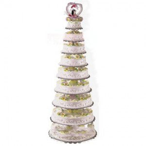 [包装] 购买蛋糕附送贺卡、刀、叉、盘、蜡烛一套,蛋糕最上端卡通模具样式仅供参考。 九层圆形鲜奶蛋糕,淡黄色鲜奶玫瑰花(6寸开始,每层加2寸,共9层) [蛋 糕 说] 愿你们的爱情,比美洒更美;比膏油更加馨香;比蜂房下滴的蜜更甜;且比极贵的珍宝更加宝贵! |