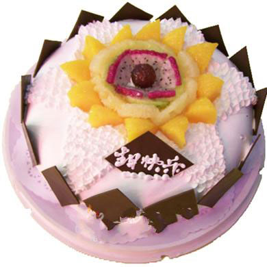 [包装] 购买蛋糕附送贺卡、刀、叉、盘、蜡烛一套 圆形鲜奶水果蛋糕,巧克力插片围成一圈 [蛋 糕 说] 在生日到来的今天,愿所有的欢乐和喜悦,不断涌向您的窗前。 |