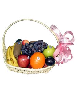 名 称: 金色硕果 材 料: 香橙、鲜桃、葡萄、苹果、猕猴桃约、香蕉等时令水果(水果根据当地货源不同,会有适当调整) 包 装: 柳编有柄花篮盛放,保鲜膜包装,规格:35×25cm(长×宽),丝带花装饰 花 语: 每届中秋,民间皆以月饼果品相馈赠,至十五月圆时,陈瓜果于庭以供月,秋高气爽,月色分外光明,推杯见盅,举杯邀月更是抒发对亲友的思念情怀,这一个习俗仍旧是佳节最具兴致的形式了。 |