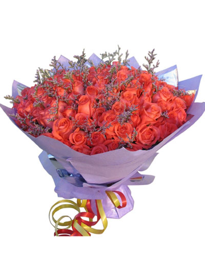 [材 料]:99支粉色玫瑰,搭配情人草所精心设计制作的 [包 装]:紫色皱纹纸精美包装 [花 语]:有了你在我身边,我才知道我是世界最幸福的 |