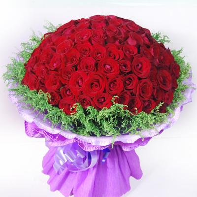 【花材】 99支昆明A级红玫瑰+外围黄莺;淡紫色进口卷边纸圆形包装 . 【花语】 特别的爱,送给特别的你,都说玫瑰代表爱情,为你送去一份至纯至真的爱,为你送上长长久久的情 |